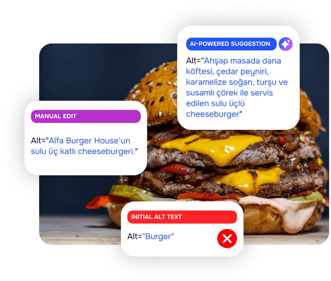 SEO uyumlu ve yüksek kaliteli alternatif metinler üretir.